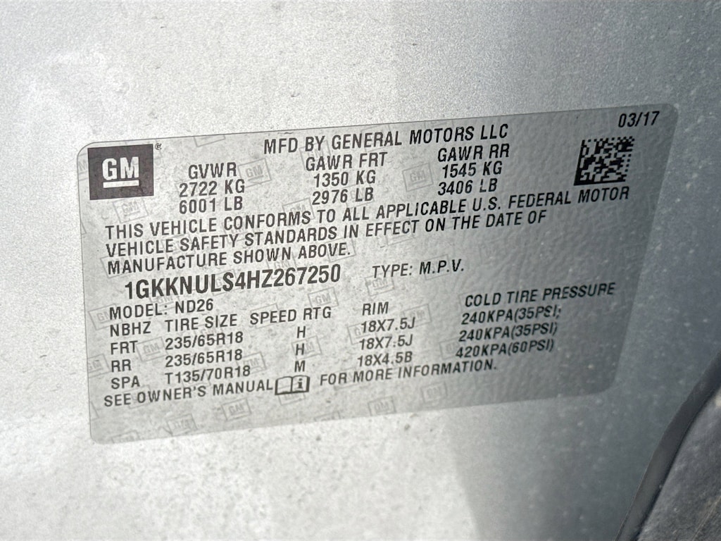 - 1GKKNULS4HZ267250